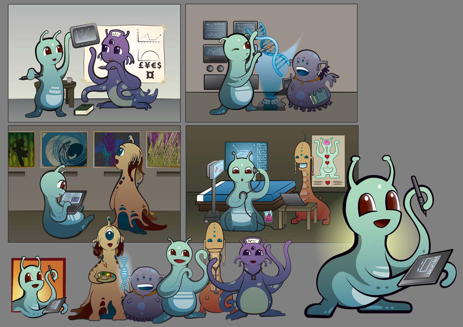 All of my gallery artwork be it anime, cartoon, comic, commission based, painted, logo imagery or even layout templates are all sketched by hand first. I scan the drawings into the computer, and bring them into the program that I plan to use to finish them. This art gallery is the finished artwork. Though I am more specialized in the anime style, I also enjoy branching out to see where creativity leads!
